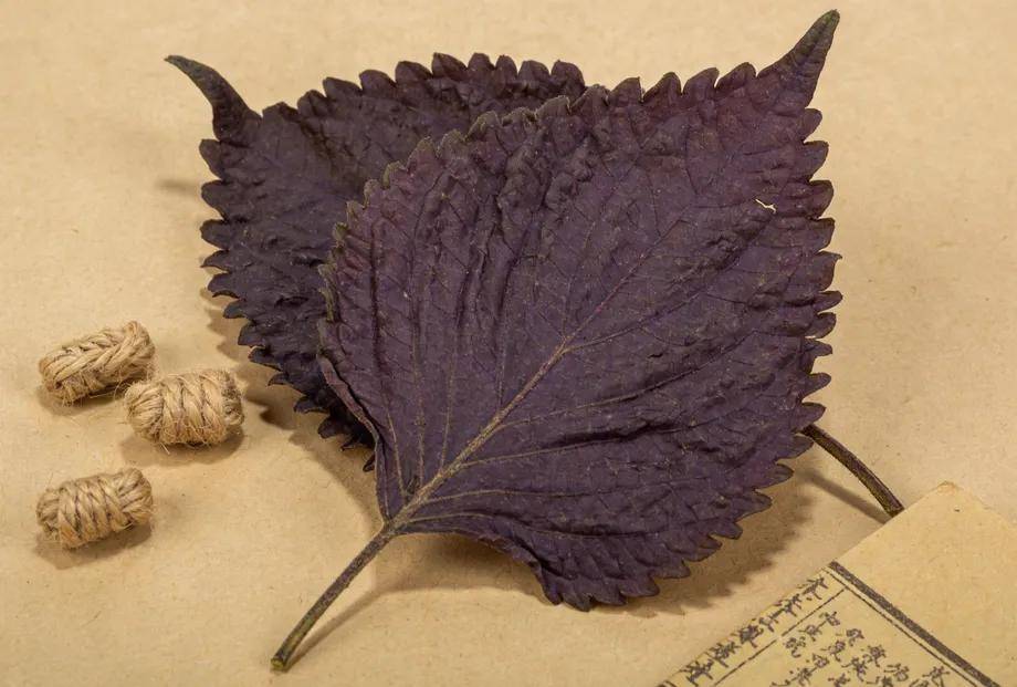 紫苏叶辛、温,归肺、脾经,具有解表散寒、行气和胃的功效,用于风寒感冒、咳嗽呕恶、妊娠呕吐、鱼蟹中毒等症。