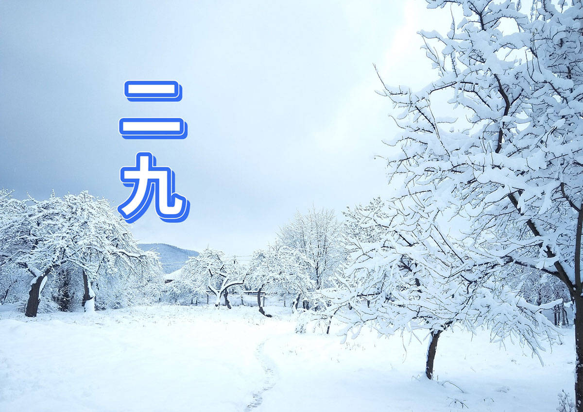 不知不觉中12月迎来收尾,新的一年即将开启,与此同时,我们也迎来了数九的第二个阶段——二九。其实在一九中,我们已经明显感受到了寒冷气息,不过这只是开始,真正的寒冷还在后边。二九则意味着寒冷的加倍,其实这个阶段要比我们所想象的更冷,届时地表热量收支差已经由正转为负,这意味着每天接受的热量难抵散热,因为温度会继续下降,为三九四九积攒寒气。所以从一定程度上来看,二九是向最冷时期的一段过渡时期,届时我们要好好利用这几天,把身体状态调整好。