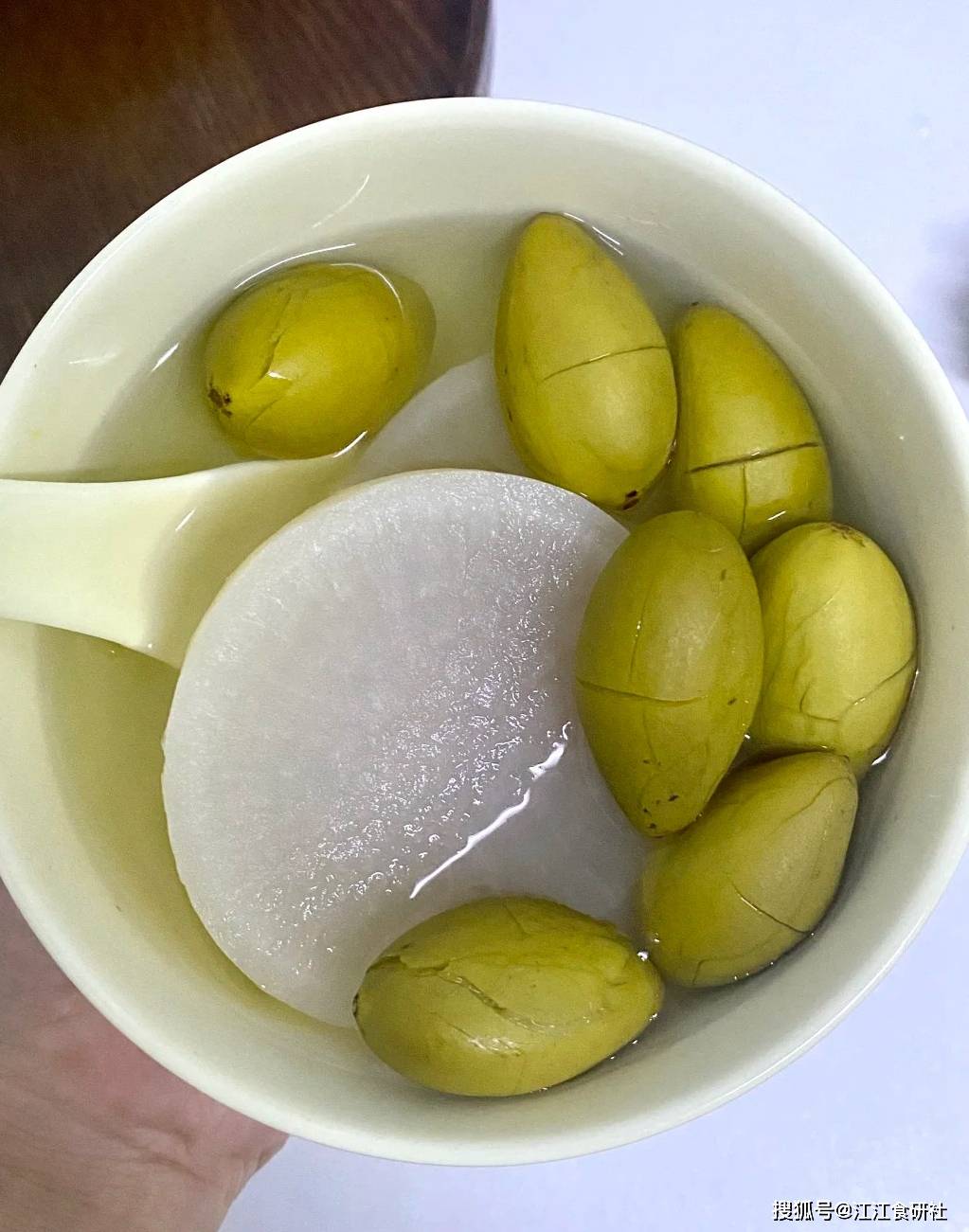用的是青橄榄,不是蜜饯那种。它初嚼酸涩,但回味甘甜悠长,特别能生津利咽。配上白萝卜的润,能一路从喉咙滋润下去。