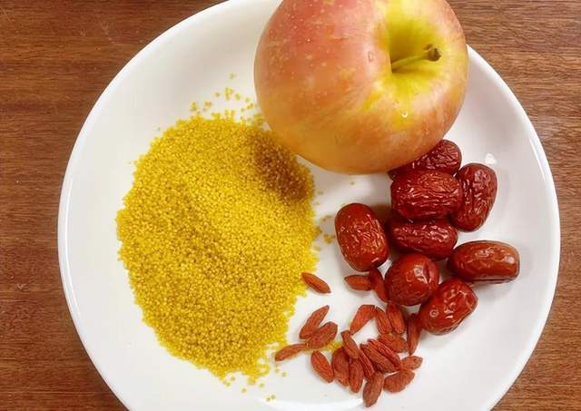 【小米苹果粥】准备食材:小米、苹果一个(选甜脆的那种,比如富士)红枣几颗、枸杞一小把红糖适量(喜欢原味的也可以不放)