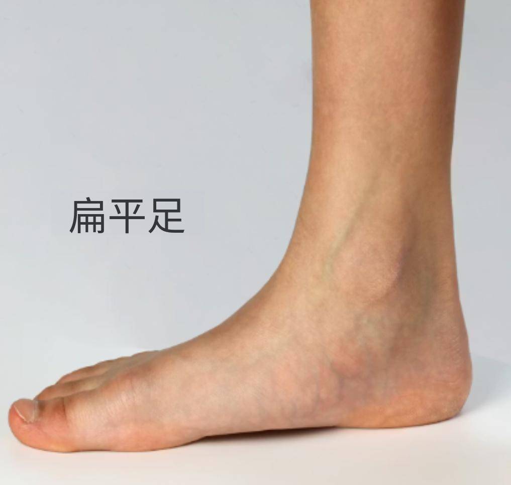 扁平足又称“塌陷足弓”,指足底内侧的足弓较低或完全消失,导致足底几乎完全贴地。