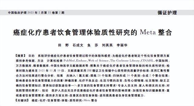 [1]田野.癌症化疗患者饮食管理体验质性研究的 Meta整合,2023-02-20