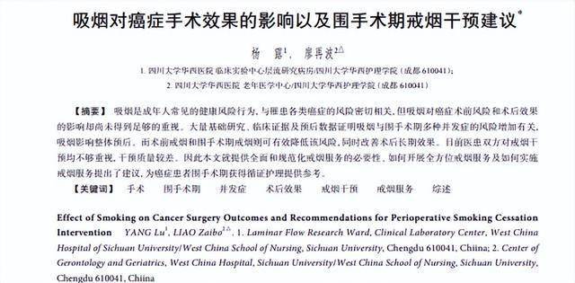 [1]杨露.吸烟对癌症手术效果的影响以及围手术期戒烟干预建议,2023-11-20