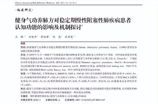 [1]庄敏. 健身气功养肺方对稳定期慢性阻塞性肺疾病患者认知功能的影响及机制探讨 ,中国康复医学杂志, 2023-07-07