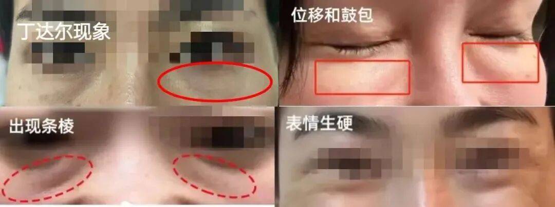 结构型/衰老型泪沟如果直接填平,很容易出现发泡、起棱、肉条感:
