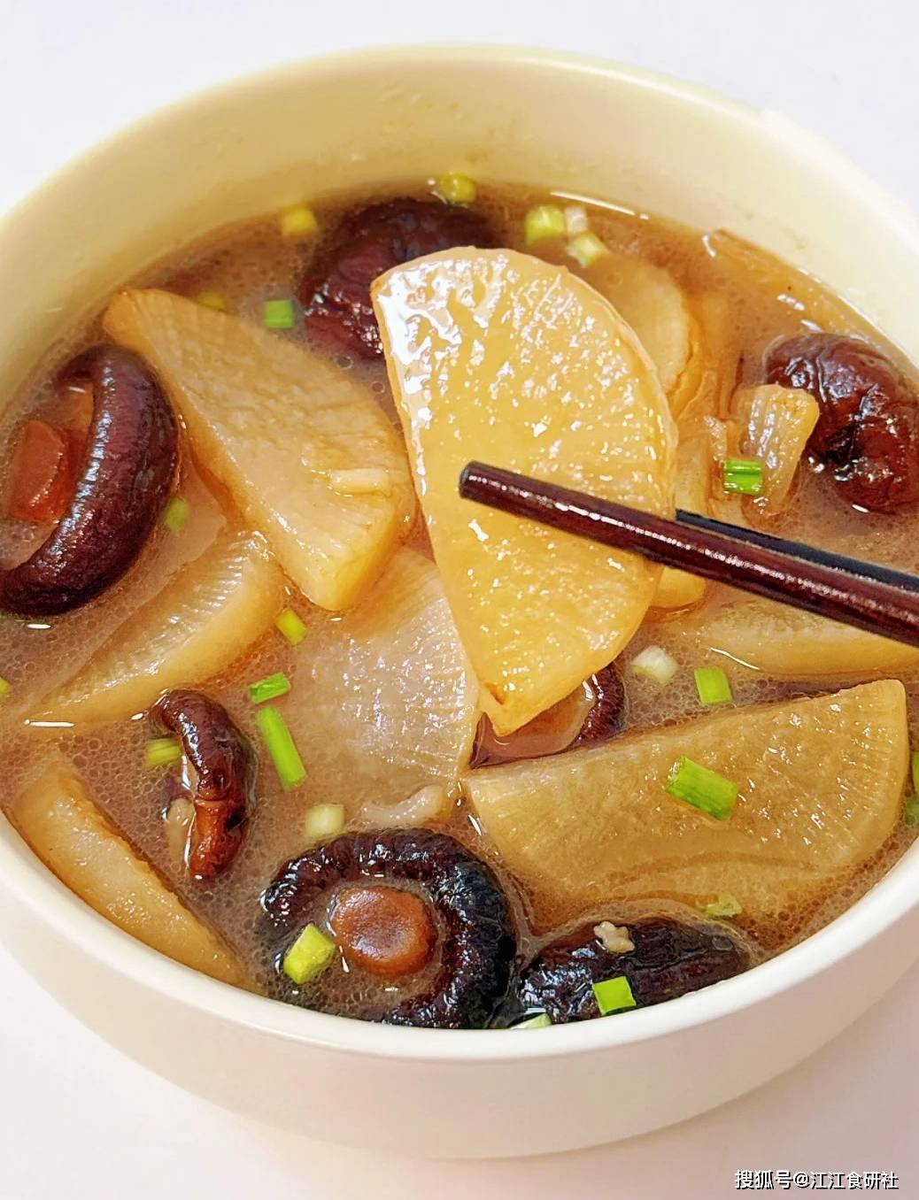 干香菇的浓郁香气,是天然的“味精”。把它和白萝卜一起烧,香菇的鲜味会一丝丝渗进萝卜的每一个毛孔里。