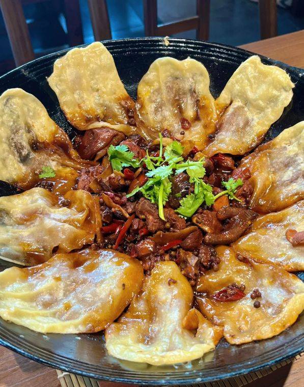 吃地锅鸡,必须用手。直接撕下一块喝饼,蘸着浓稠的酱汁,或是包上一块鸡肉,一同送入口中。饼的酥软与焦脆,鸡的香辣与酱醇,在口中形成丰富的层次与对比,带来无与伦比的满足感。这围锅而食的热闹,这饼与肉的不分彼此,正是徐州豪迈、实在、充满烟火气的饮食性格最生动的写照。