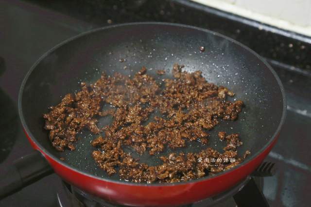 牛肉切碎,热锅放油,倒入牛肉翻炒,加入少许米酒拌匀,再加入生抽,老抽和蚝油拌匀即可出锅。