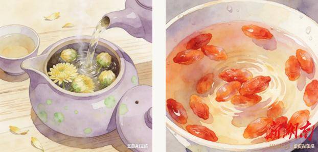 枸杞中的多糖可以促进肝损伤的修复。菊花和枸杞搭配在一起泡茶,具有养阴补血、疏风清热、解毒明目的作用。