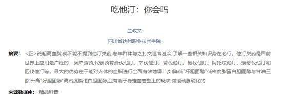 [1]兰政文.吃他汀:你会吗[J].家庭医学(下半月),2020