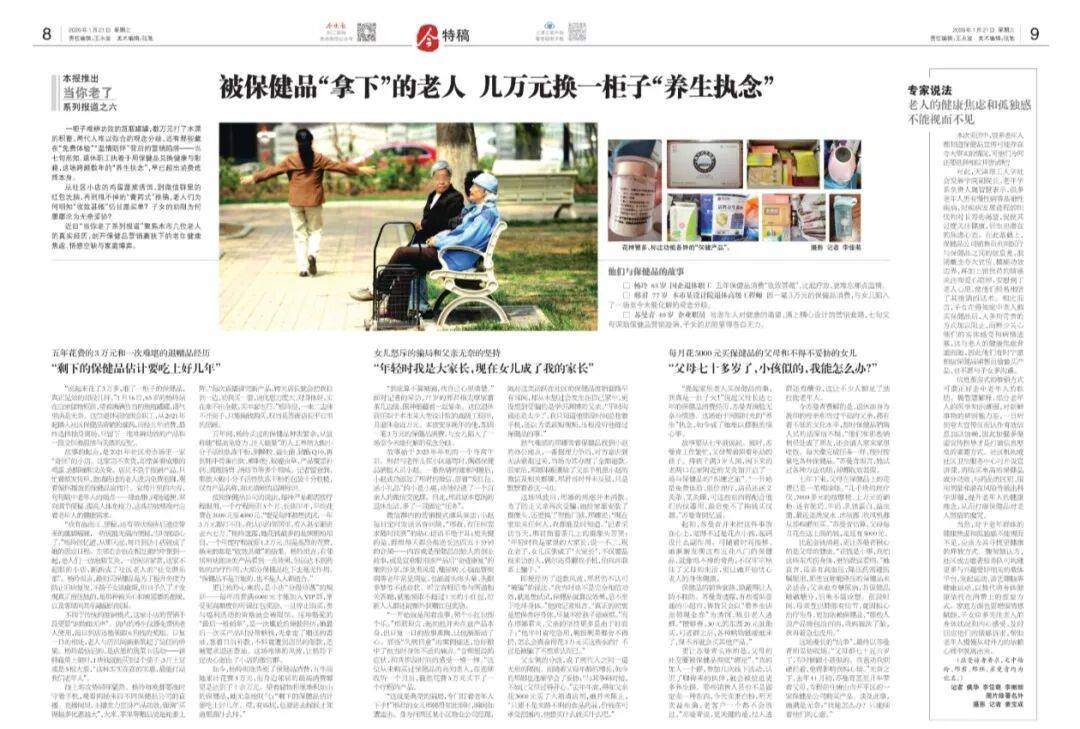 近日“当你老了系列报道”聚焦本市几位老人的真实经历,剖开保健品营销裹挟下的老年健康焦虑、情感空缺与家庭博弈。