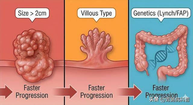 如果病理报告上写着 “绒毛状”成分多,或者出现了 “高级别上皮内瘤变”,这就好比拉响了警报,说明这颗息肉已经站在癌症的门口了,可能只需要几个月到一年就会完成“最后一跃”。