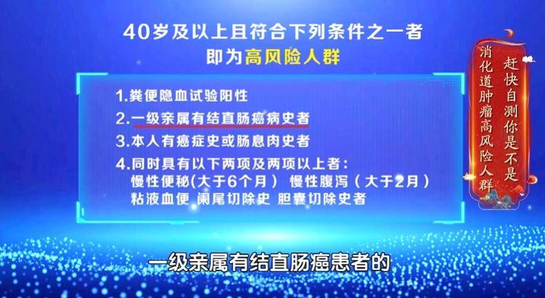 约有20%的结直肠癌有遗传倾向,若存在结肠癌家族史的人群,其患结直肠癌的风险约为常人的2-3倍。