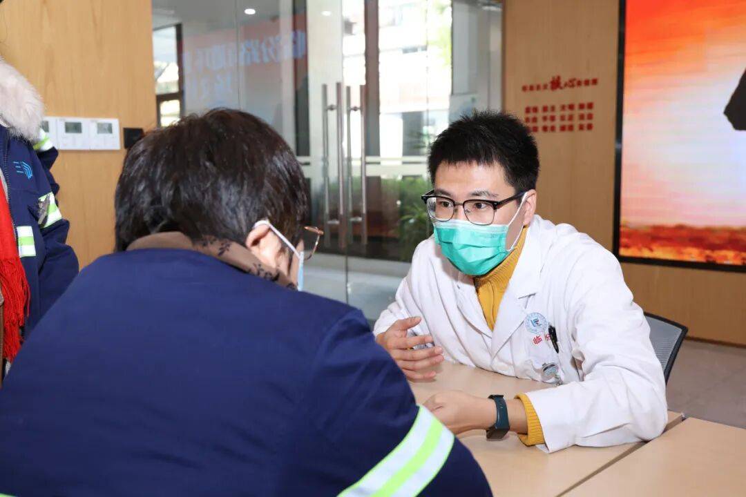 培训结束后,社区卫生服务中心的全科、康复、中医等多科室医生们并没有离开。他们留下来,为到场的30余位环卫工人提供了面对面的健康咨询。