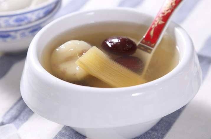甘蔗荸荠汤 :取新鲜甘蔗 1 段、荸荠 7 个,将二者削皮洗净,放入锅中,加水武火煮沸,转文火继续煮 20 分钟左右即可食用。