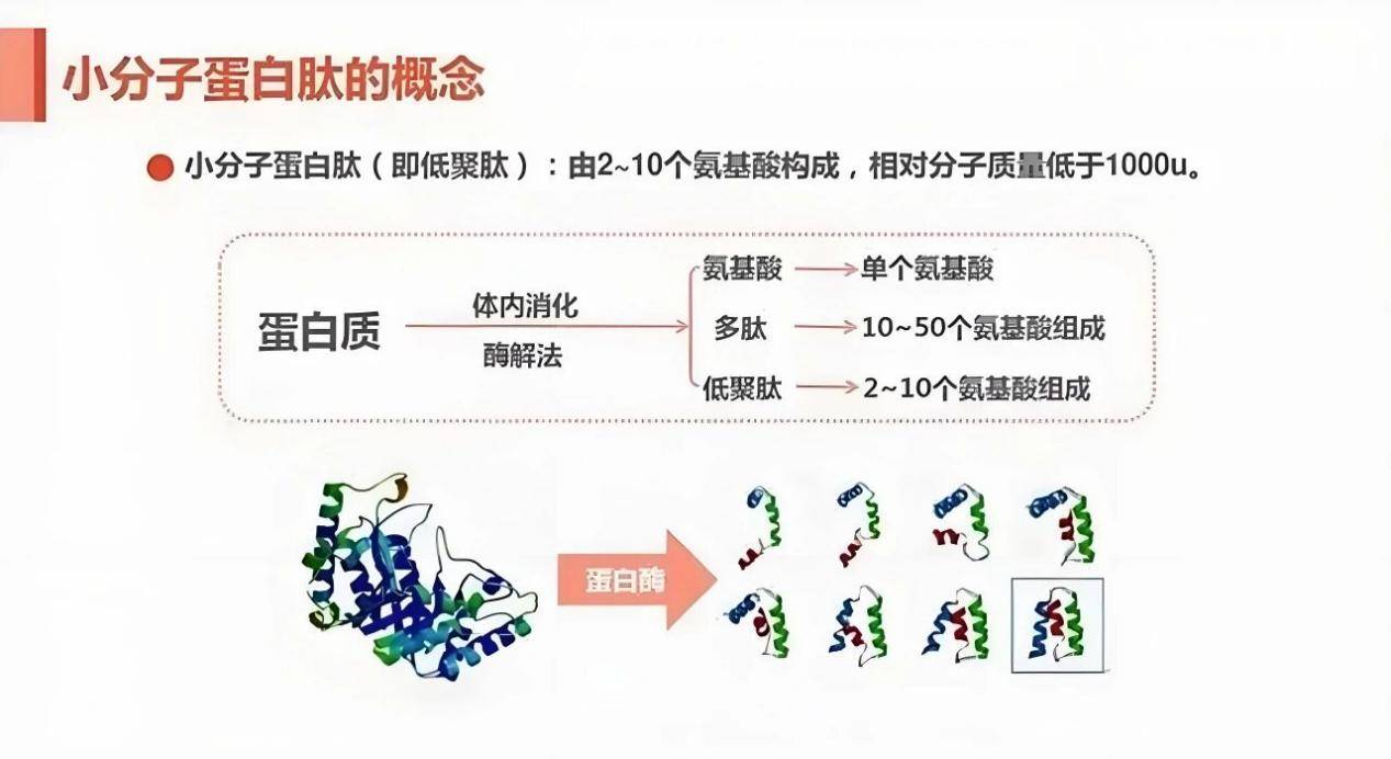 人们通常称之为“短肽”、“寡肽”,也叫“低聚肽”,学术界习惯叫“多肽”、“活性肽”,是介于大分子蛋白质和小分子氨基酸之间一段具有活性、易吸收、易激发人体再生系统的功能性营养素。此外,活性肽还具有蛋白质和氨基酸不具备的独特生理活性和医疗保健作用,具有营养、保健、治疗三重功效。