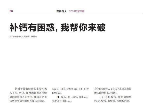[1]廖世雄.补钙有困惑,我帮你来破[J].药物与人,2024