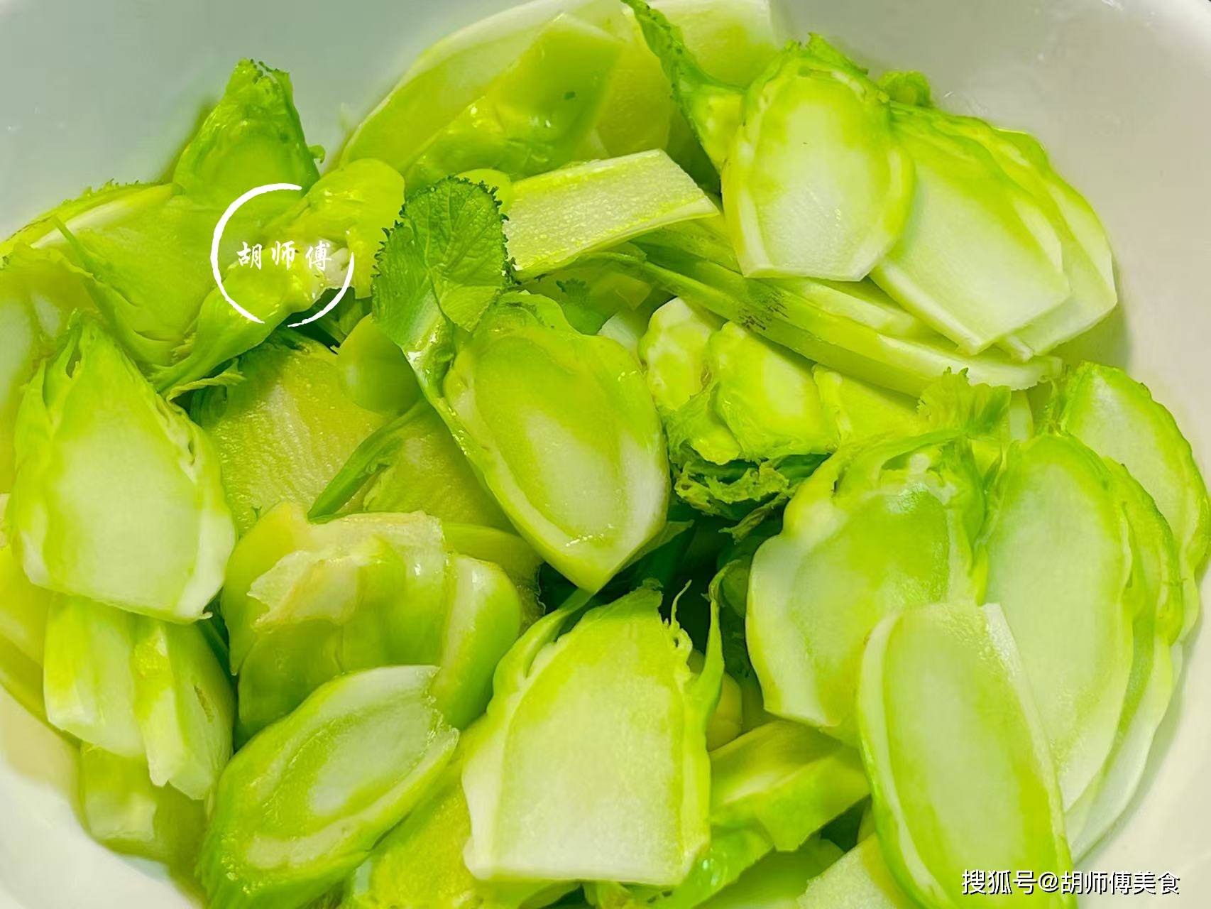 第二步:锅中放入适量水,等水烧热后,将3滴油和儿菜片放入锅中,大火将儿菜焯水30秒后捞出,然后立即过凉水,等儿菜完全冷却后即可捞出备用。