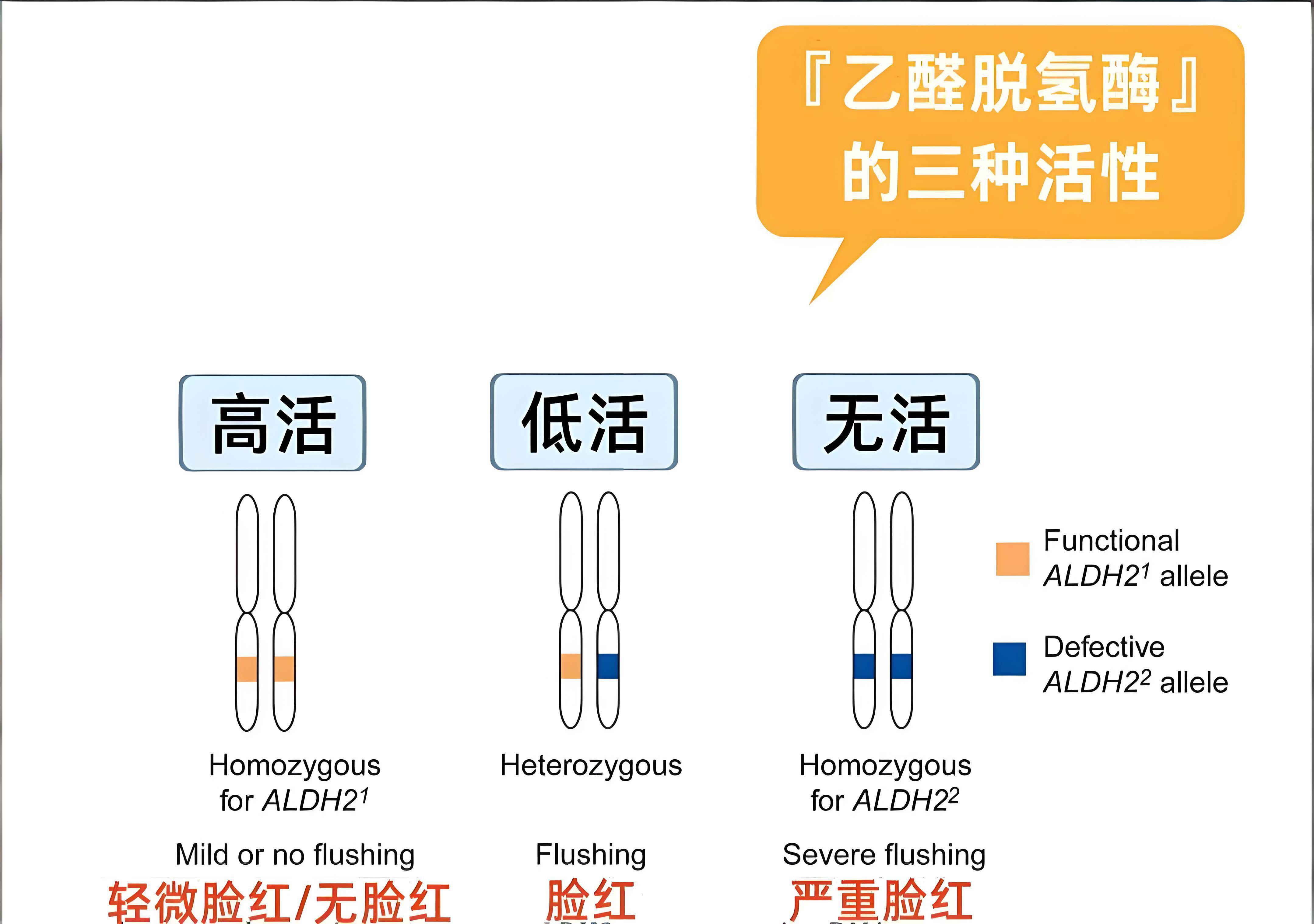 在中国人群中,携带缺陷基因的比例惊人:高达40%的汉族人口存在乙醛脱氢酶缺陷,其中约8%为纯合缺陷。这也是为什么东亚地区的“红脸族”特别常见。