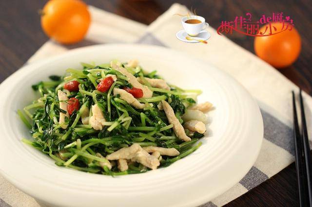 推荐菜谱【豆苗炒肉丝】 原料: 豆苗 里脊肉 枸杞 料酒 淀粉 生抽 油盐