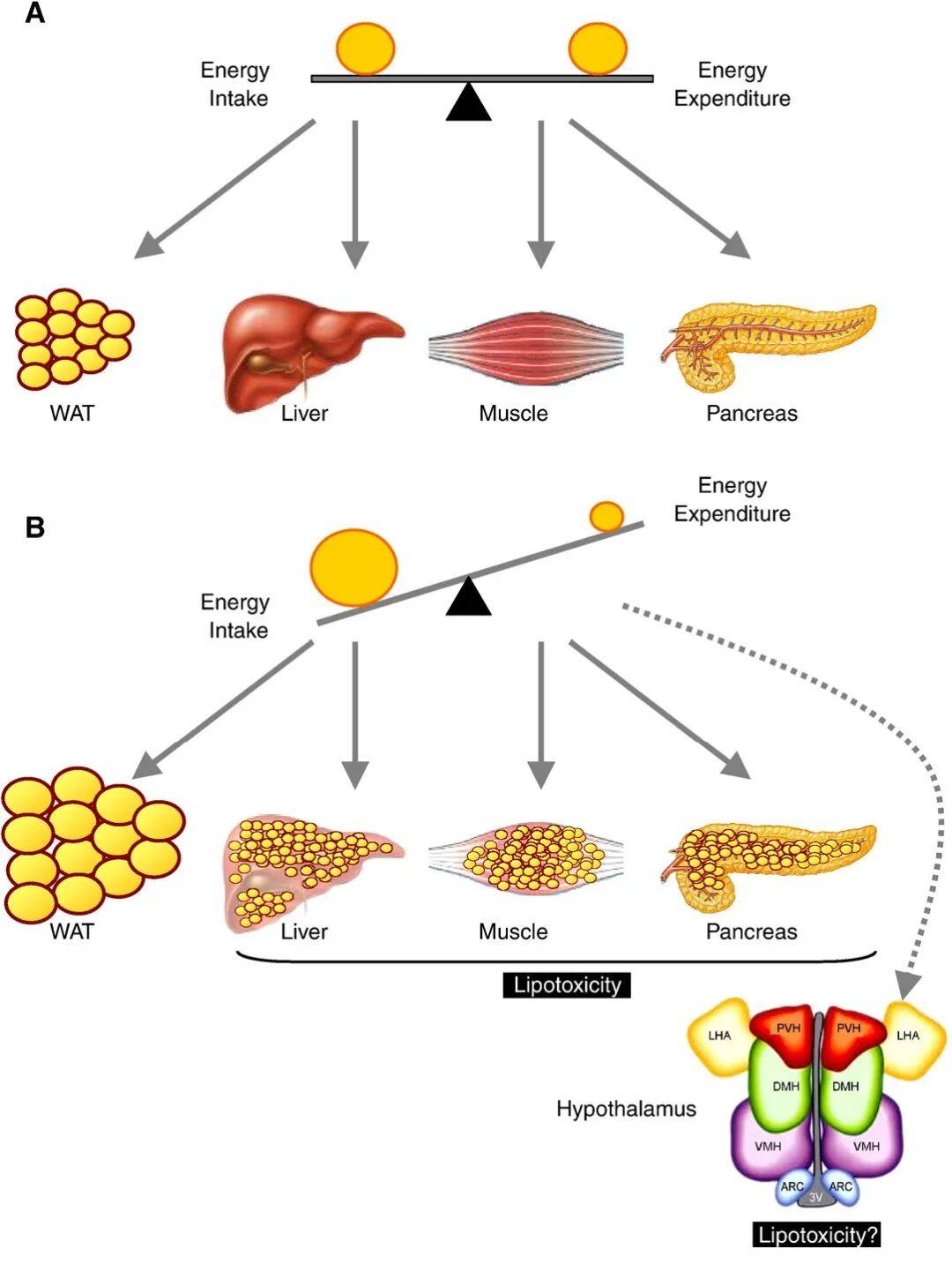 餐后脂毒性的解除主要依靠脂肪组织,脂肪组织收到胰岛素信号后会利用葡萄糖合成甘油,然后将游离脂肪酸合成甘油三酯储存起来。