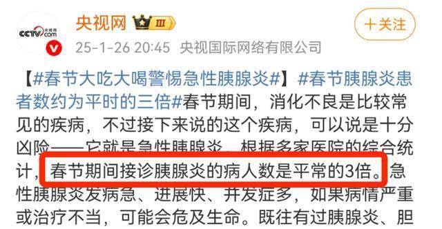 另外需要单独提醒的是,暴饮暴食还和急性胰腺炎的发生有很大关系,在临床上有很多急性胰腺炎的发生都和暴饮暴食密不可分,这是因为暴饮暴食会刺激胰腺分泌大量胰液,一旦胰液排出不畅,便可能引发急性胰腺炎,对于这种病相信大家都有所耳闻,不仅十分凶险,而且治疗起来代价很大。