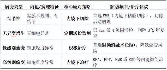 Barrett食管并非单一状态,医生会根据内镜下的表现和病理结果将其分为不同类型。针对不同类型的病变,处理方式截然不同。