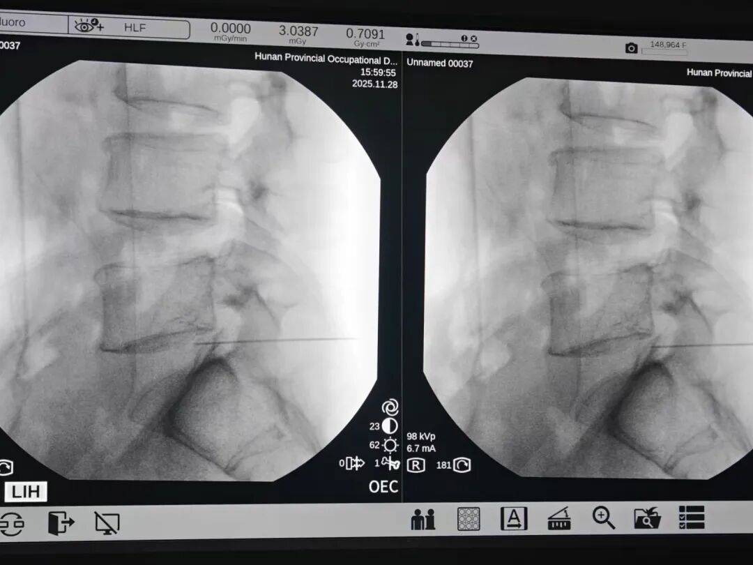 湖南省职业病防治院(南华大学附属职业病防治院)就诊后,彭先生被确诊为 腰椎间盘突出。考虑到他需要长期驾驶的职业特性,且保守治疗效果不佳,医生建议行 “腰椎射频消融术”。手术当天,他的腰痛即明显缓解。彭先生感叹:“原来以为一定要开刀,没想到微创也能解决问题!”