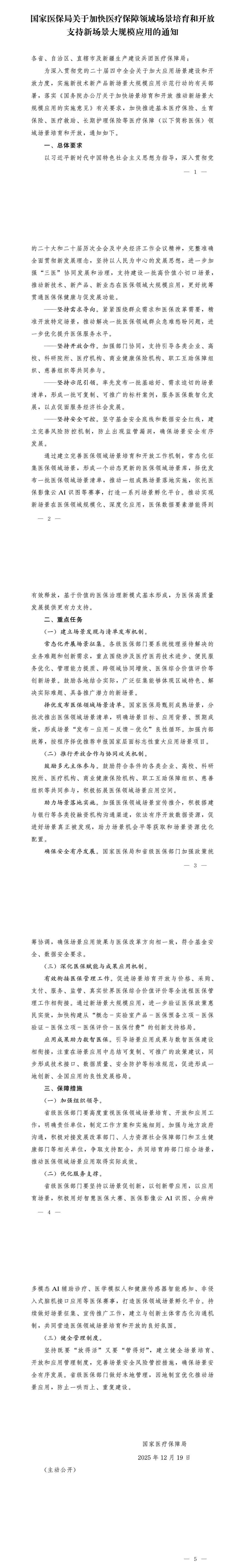 下面附《关于加快医疗保障领域场景培育和开放支持新场景大规模应用的通知》原文: