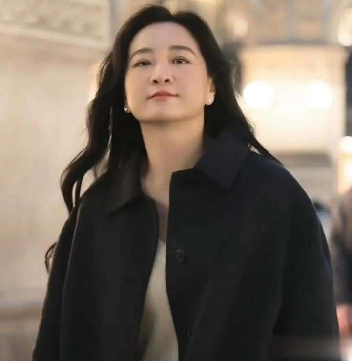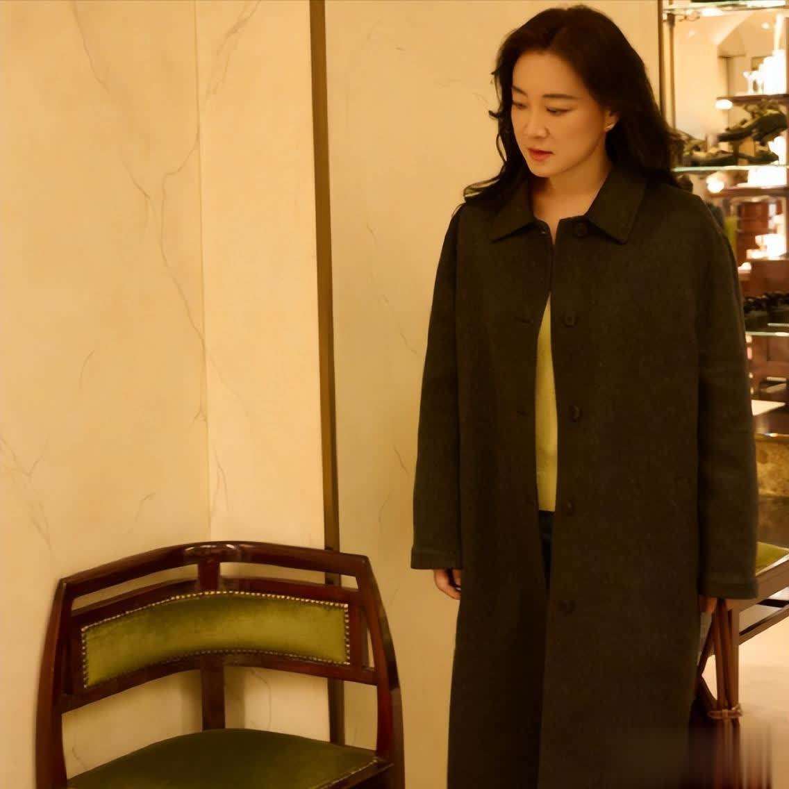 她站在那里,静静地散发出一种强烈的女王气场,仿佛她不再是娱乐圈中辛苦工作的打工人,而是已经从一个普通角色跃升为高高在上的上位者。尤其是在她的脸上,再也看不见曾经那种亲切可亲的笑容,取而代之的是一种让人难以接近的冷峻感。她的穿着也显得格外得体:深绿色皮质上衣搭配丝绸质感的短裙,再加上一双高跟鞋和手提包,浑身散发着职场女强人的气场。