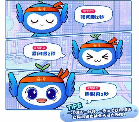 1、多做眨眼操:轻闭眼2秒→紧闭眼2秒→睁眼再2秒。每次训练1分钟,每天至少做10组眨眼训练!