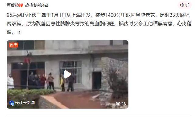 当王先生终于站在家门口,父亲看着他晒黑的脸庞和磨破的鞋,流下的不仅是心疼的泪,更是对儿子蜕变的欣慰。这场徒步早已超越“回家过年”的意义:它是一个年轻人对抗疾病的决心,是对健康生活的重新定义,更是对“坚持”二字最生动的诠释。正如网友所说:“当他能走完这1400公里,生活里还有什么困难不能克服?”