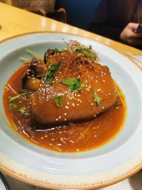 这道菜的“豪横”在于它的实在。现在的日子好了,平时都讲究清淡饮食,但过年嘛,就是要大口吃肉。红烧肘子皮糯肉烂,肥而不腻,入口即化。在传统文化里,猪肘子象征着“肥猪拱门”,寓意着新的一年招财进宝、富贵吉祥。看着这么大一块肉,心里就觉得踏实、富足。