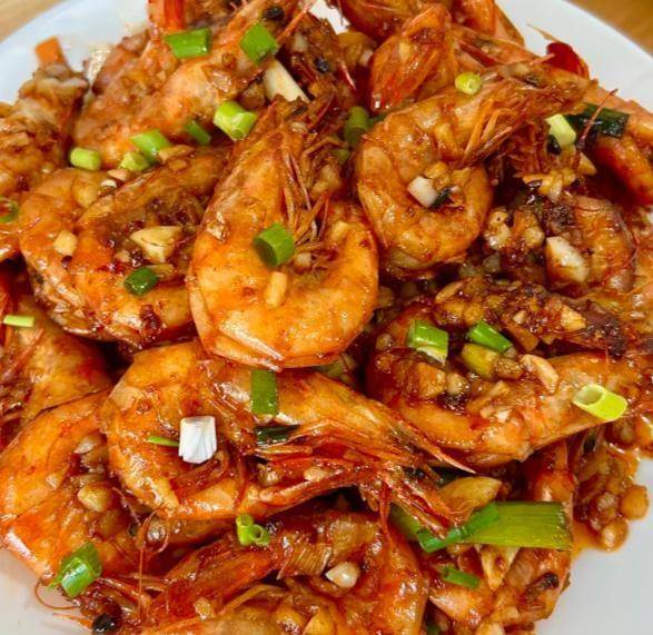 挑选个头大的大虾,经过油焖后,虾壳变得红彤彤、亮晶晶的。一个个整齐地码在盘子里,看着就喜庆。这道菜以前只有过年才舍得吃,现在虽然生活好了,但它依然是“硬菜”的代表。大虾肉质紧实Q弹,味道鲜甜咸香。