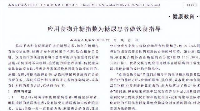 丛媛.应用食物升糖指数为糖尿患者做饮食指导, 山西医药杂志(下半月刊) ,2010-11-25