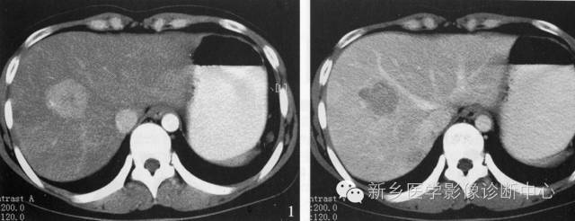 平滑肌肉瘤、软骨肉瘤、类癌、肾癌、胰岛素瘤、甲状腺癌等的肝转移癌血供丰富,动脉期及门脉期可见明显肿瘤增强征象。有时候与肝细胞癌难以鉴别,但其总体以环状增强为主要特征,再结合临床诊断很重要。