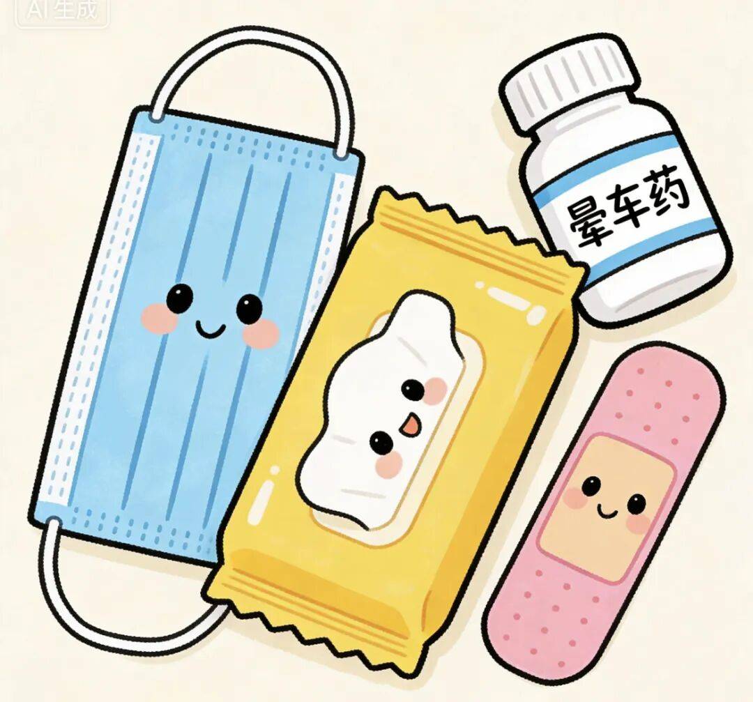1.健康防护:备好口罩、消毒湿巾、免洗洗手液;慢性病患者带足常用药,备应急药(晕车药、肠胃药、创可贴等)。