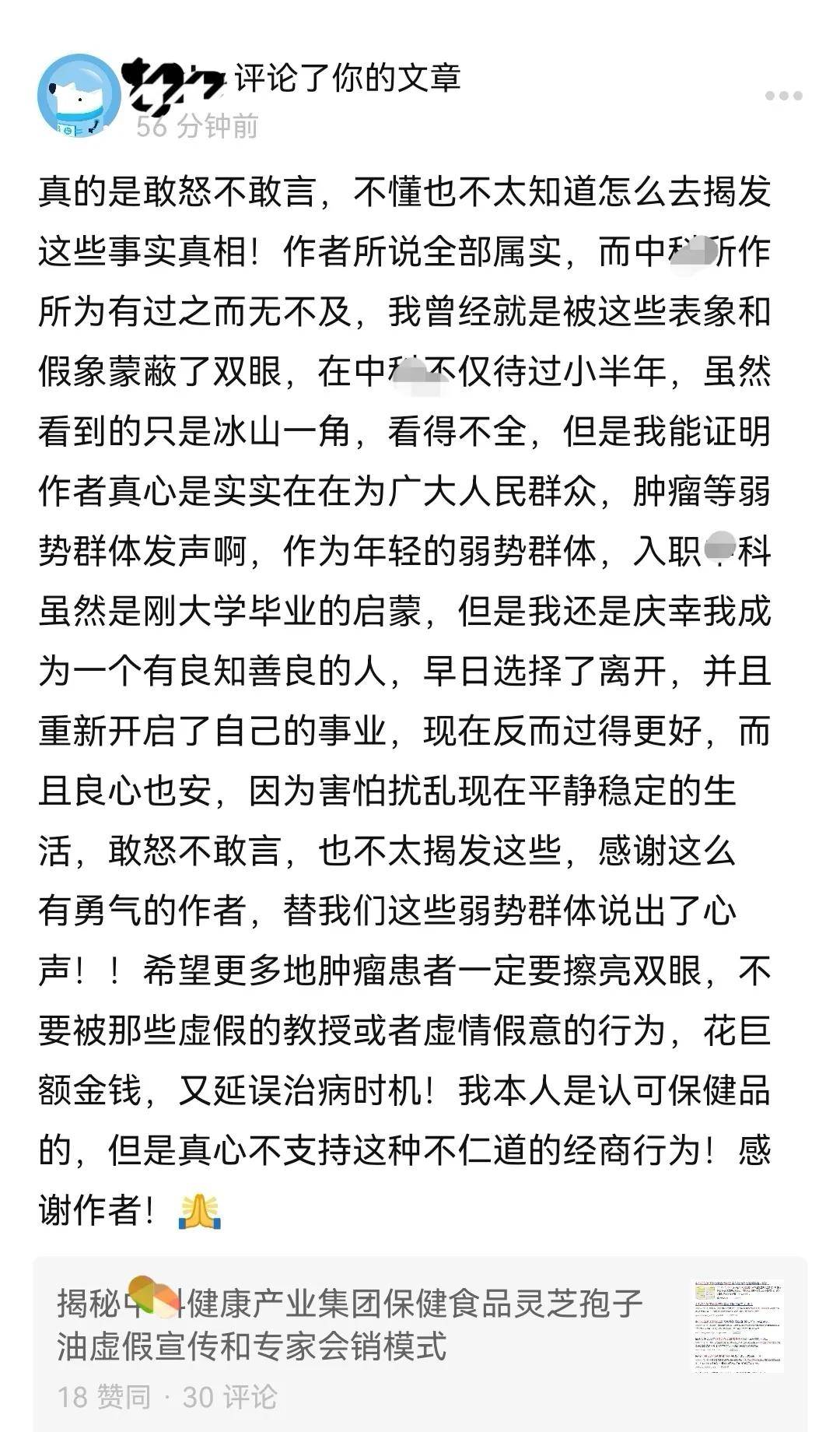 也有相关离职人员表达了愤怒,指出了暴利灵芝孢子油企业“虚情假意”的一面。