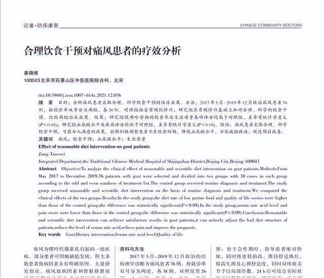 [1]姜晓维.合理饮食干预对痛风患者的疗效分析[J].中国社区医师,2021