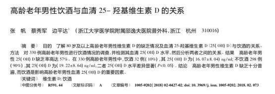 [1]张帆.高龄老年男性饮酒与血清25-羟基维生素D的关系[J].中国老年学杂志,2018,38(02)