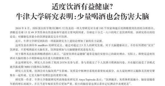 [1]适度饮酒有益健康?牛津大学研究表明:少量喝酒也会伤害大脑 饮料工业 2021-06-28