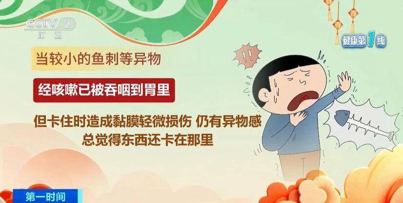 医生在往年春节接诊中发现,一类常见的饮食安全风险频频发生,那就是消化道异物卡喉。这类意外多是因为吃得过快、吃饭时说话引起,最常见的是鱼刺、禽类骨头、坚果核等。