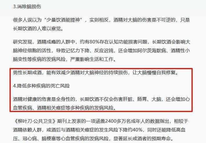 很多男性平时总觉得喝两口没什么大碍,甚至很难相信戒酒能给身体带来多大好处,其实身体对于酒精的反应非常直接,只是平时被忽略了。