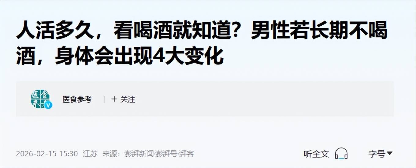 为了健康和状态,试着隔段时间不喝酒,或者干脆就直接把酒戒了,也算是给自己的晚年谋一个健康保障了。