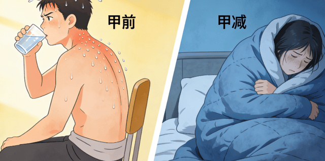 这是两种截然不同的表现,对应不同的甲状腺异常类型。甲亢患者因为代谢亢进,身体产热增多,晨起时会感觉口干舌燥、出汗增多,即使是秋冬季节,也可能醒来后脖子、后背有汗液;甲减患者则相反,代谢减慢、产热减少,晨起时会明显怕冷畏寒,即使盖着厚被子,也需要很久才能暖和过来,手脚冰凉的症状会持续到上午。
