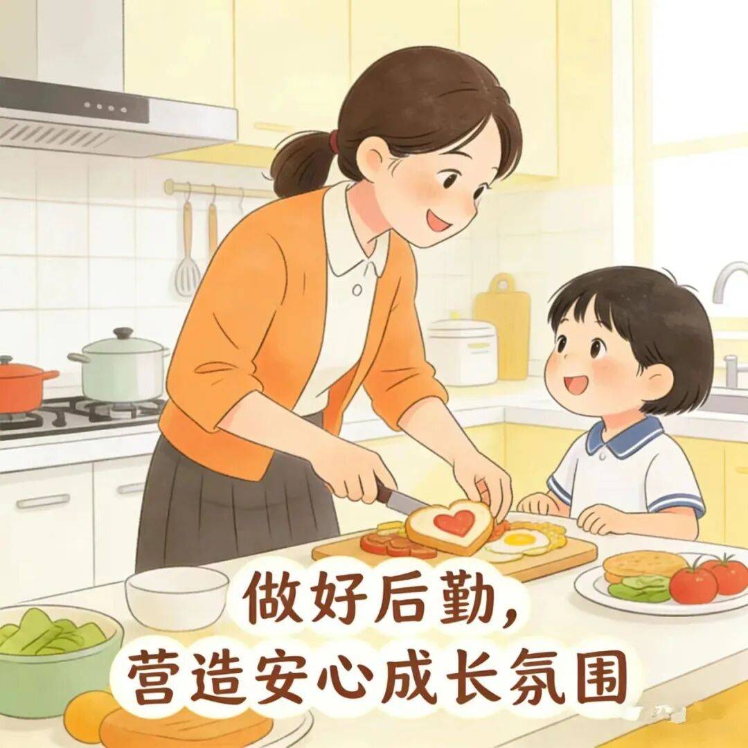 和孩子一起挑选心仪的学习用品,共同制定简单易执行的新学期计划;家里保持规律的饮食和生活节奏,晚餐后可以和孩子一起阅读、做手工。稳定的家庭氛围,是孩子面对开学挑战的最大安全感来源。还可以在开学第一天准备“加油早餐”,用仪式唤醒孩子对新学期的向往!