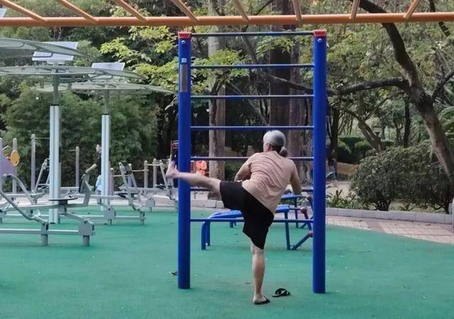 杠腿运动指的是一条腿站立,另一条腿放在杠子上,并进行反复摩擦的运动,这项运动可以通过挤压、按摩肌肉来促进血液循环,因此我们经常能看到小区楼下以及公园的健身区,总是有一些中老年人在做杠腿拉伸。
