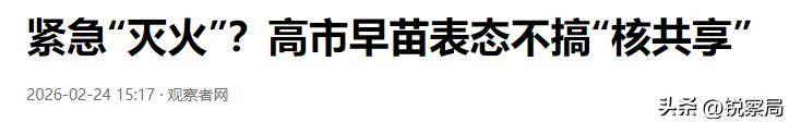 2月24日,日本政坛传出了一则出人意料的消息。在众议院接受质询时,高市早苗公开表态,对核共享持保留态度,明确表示难以认同这一安排。对于熟悉日本近况的人来说,这番表态与她过去几个月的立场几乎判若两人。之前,高市早苗在核问题上的态度一直非常激进。