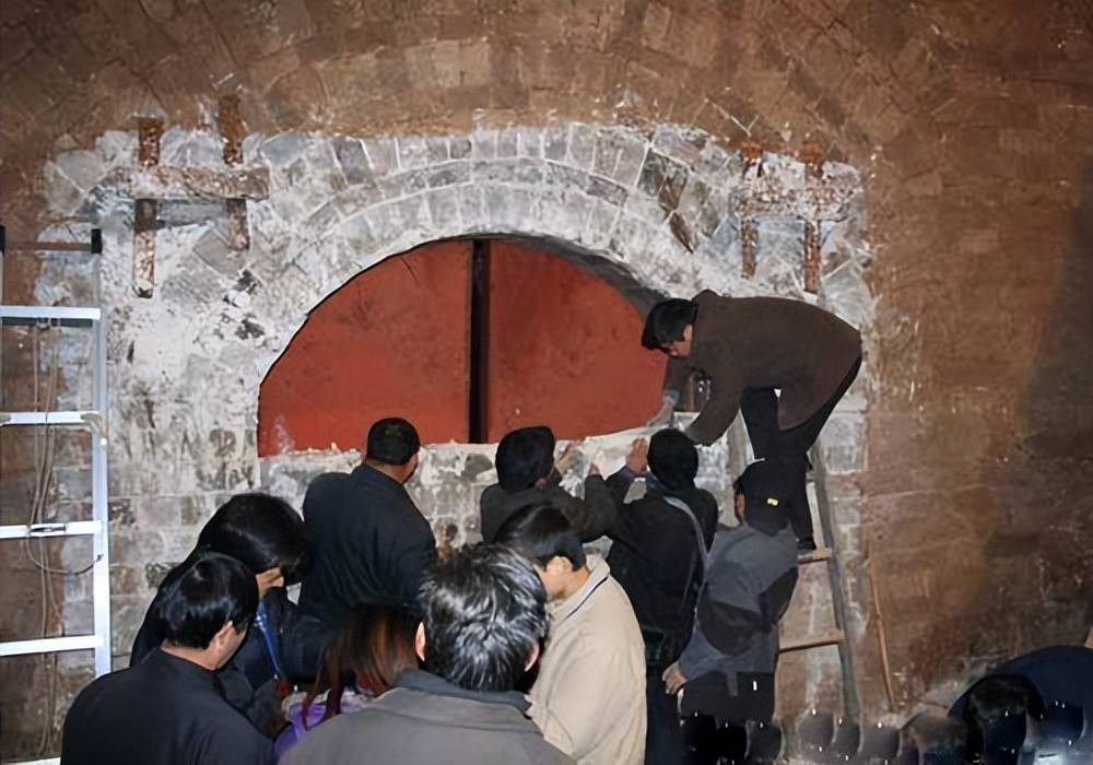 经过长时间的努力,考古队终于清理出了墓道,并发现墓道的土层以积石、黏土、碎石交替堆积,夯实得极为紧密,完全不容挖掘。仅清理墓道这一工作,就花费了将近半个月的时间。随着深入发掘,考古队员们逐层向下推进,27天后,即12月18日,他们终于揭开了封堵墓室门的金刚墙和甬道顶部。所有人都心情激动,仿佛墓门就在眼前。然而,令人意想不到的是,墓道深处又有一块奇特的石块挡住了他们的去路。它看起来像是用砖砌成的一堵半墙。考古队员们只能小心翼翼地凿开砖层,经过一番清理,他们才发现,竟然是两块墓志铭,被上下两道扁铁箍住。