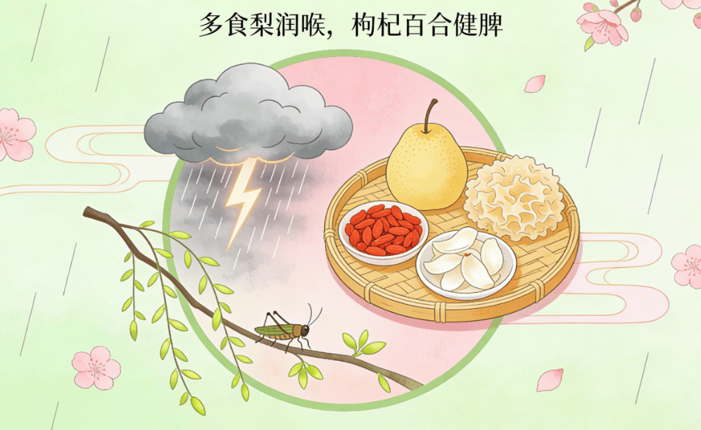 惊蛰时节,春雷始鸣,万物复苏。此时阳气升发,人体肝气旺盛,但阴血相对不足,正是养生调理的关键期 。饮食上若不懂得调摄,极易引火上身,出现咽干口燥、情绪烦躁等“春燥”现象。中医认为,此节气的饮食核心在于 “疏肝健脾、滋阴润燥” ,为整个春天打下健康根基。